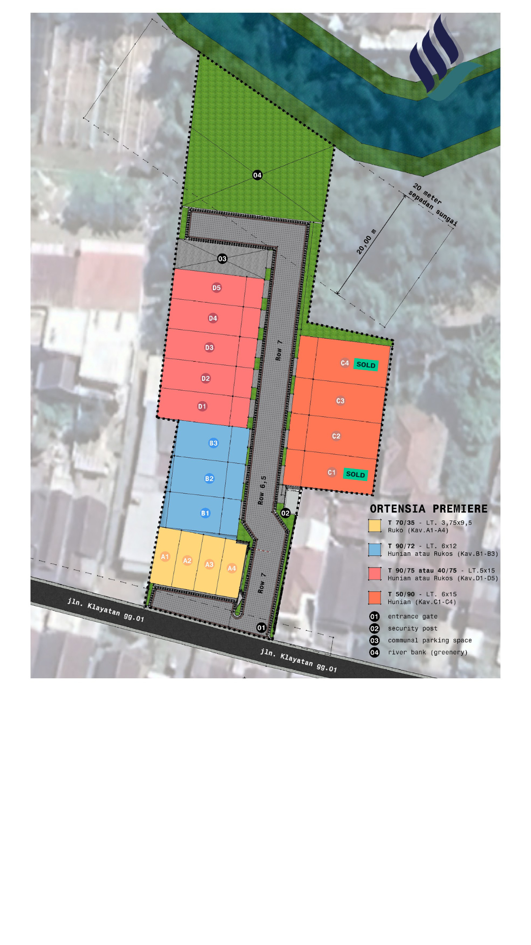 Fasilitas komunitas seperti parkir communal, Taman di area belakang ,area bermain anak dengan view riverside